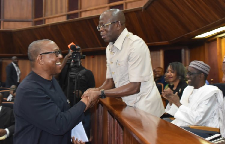 Oshiomhole And Peter Obi Exchange Greetings In Court (Photo)