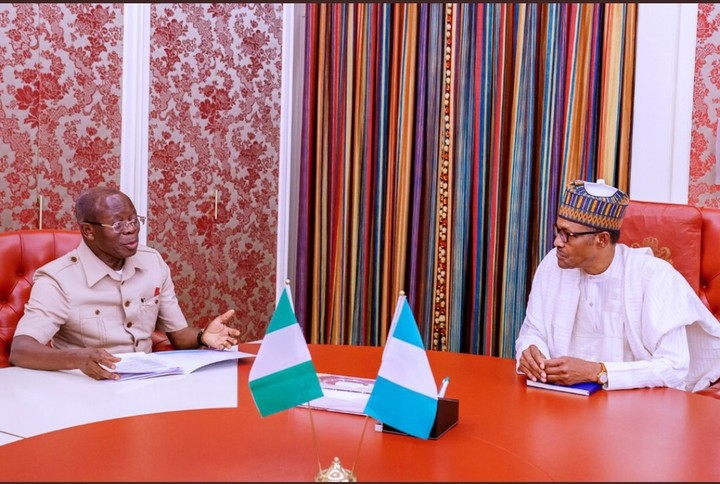 The National Chairman of the All Progressives Congress (APC), Comrade Adams Oshiomhole, has updated President Muhammadu Buhari on the activities of the party including his purported suspension and subsequent reinstatement by separate Courts.