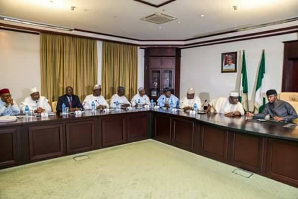 Acting President Yemi Osinbajo meets with APC Governors at the State House in Abuja. 20th July 2017.