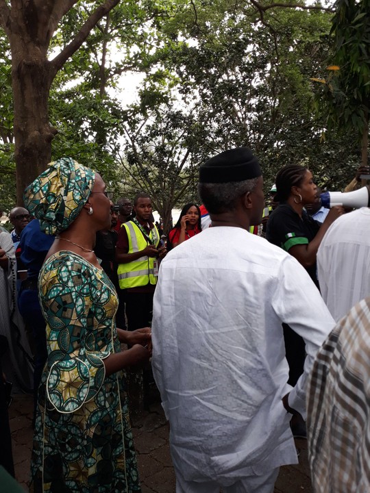 Vice-president Yemi Osinbajo and his wife Dolapo Osinbajo cast their votes at VGC, Lekki, Lagos State.