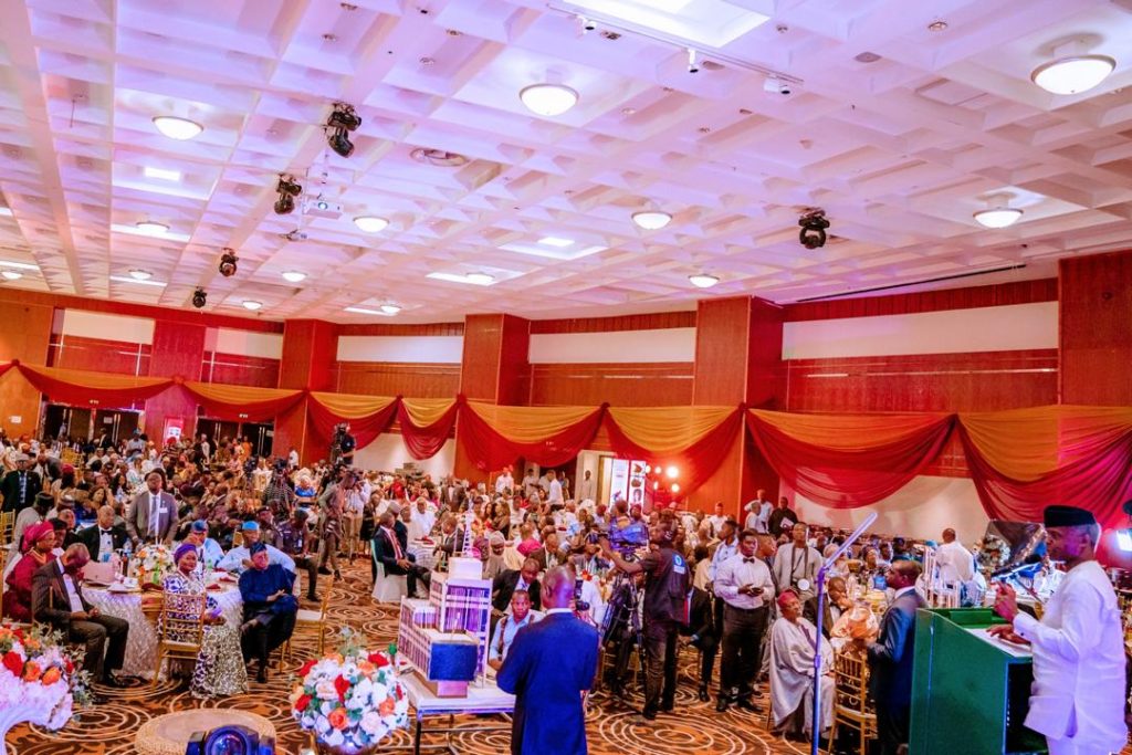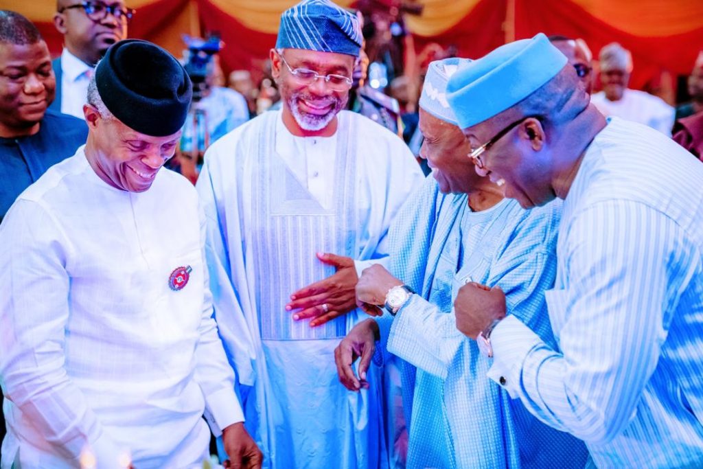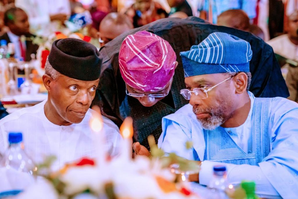 VP Yemi Osinbajo SAN attends the UNILAG at 50 Alumni Award Dinner as the Special Guest of Honour where he’s also honored with The Golden Jubilee Recognition Award presented to him by Rt. Hon. Femi Gbajabiamila Speaker of The House of Reps, Governor of Ekiti State Dr. Kayode Fayemi and Governor of Osun State Dr. Gboyega Oyetola At intercontinental Hotel Lagos.