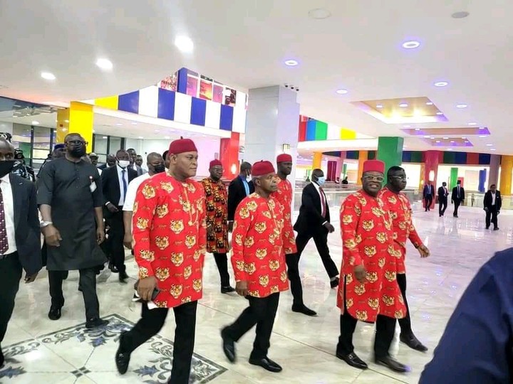 Osibanjo and Umahi inspecting the Ebonyi mall in Abakaliki today 8/4/2022.