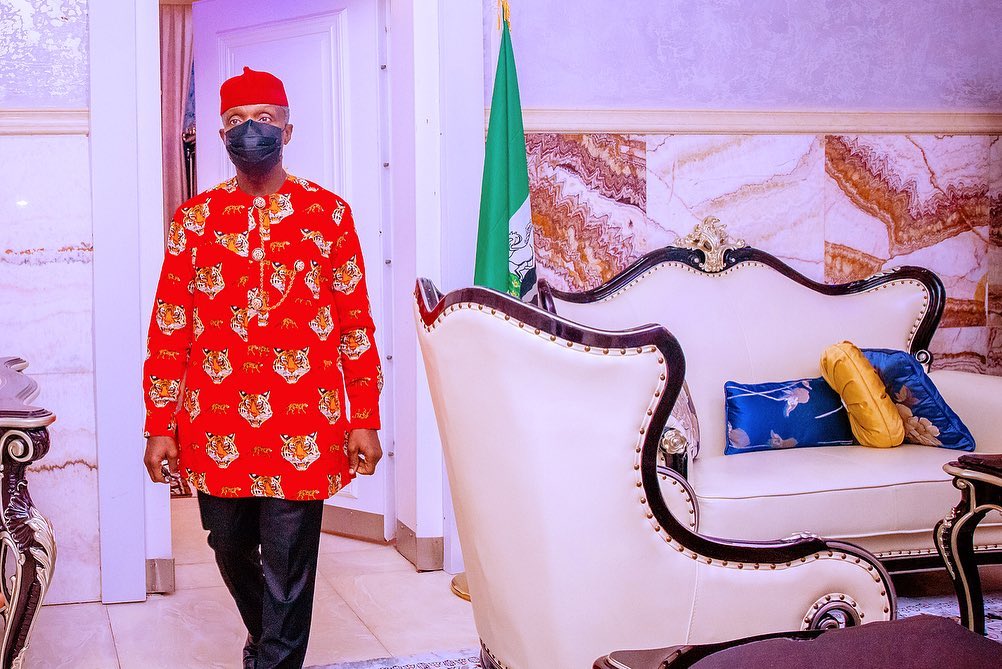 Osinbajo In Igbo Isi Agu Attire As He Inspects Projects In Ebonyi State
