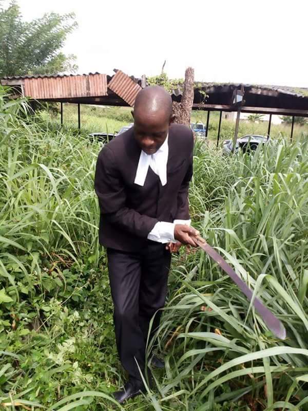 Barr Boye Williams and Chief Barr Jide Olawole pictured clearing the High Court llesa’s premises in Osun by themselves this morning 12th July, 2018