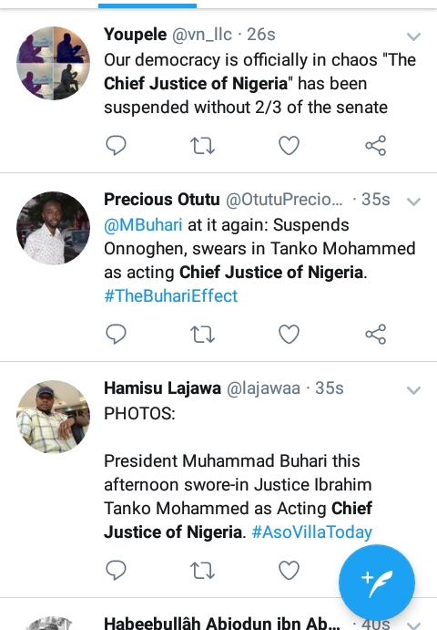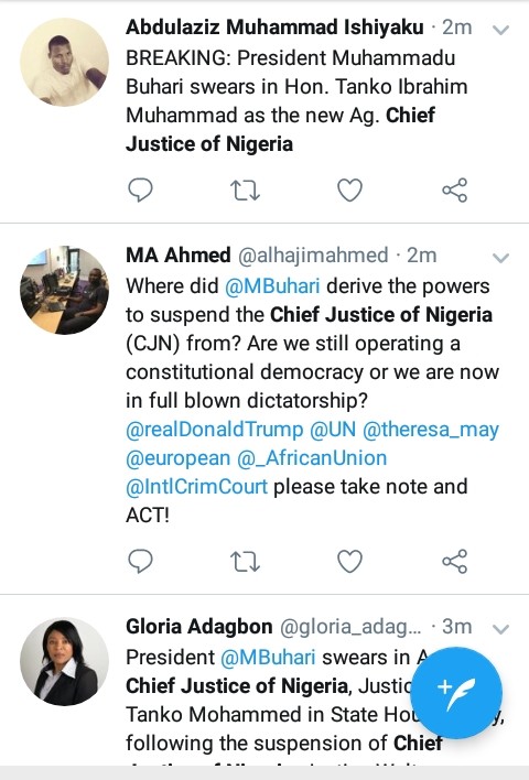 One of the aide to President Buhari, Bashir Ahmed breaks the news of suspension of Walter Onnoghen and the new appointed Acting CJN, Tanko Muhammed.