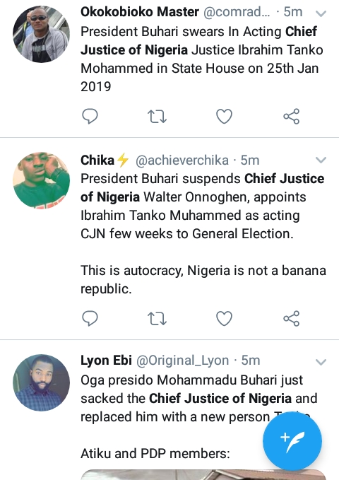 we are in trouble, hw can a chief justice of nigeria be removed by a president, he knws he dnt have de power to remove him wit out de other frm de senate, dis is totally nosense.