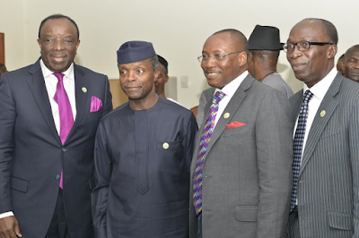 The Vice President, of Nigeria Prof. Yemi Osinbajo with L-R: National President, UNILAG Alumni Association, The Olor’ogun Dr. Sonny Kuku, Otunba Seni Adetu VP of the Association and National Secretary, Barr. Tunde Fadahunsi
