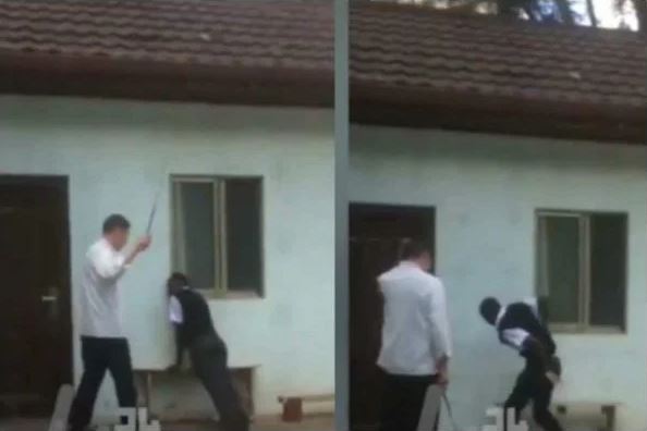 In the short clip shared by K24, the Chinese national is seen asking the Kenyan national identified as Simon Oseko to go down on his stomach as he holds a cane in his hand.