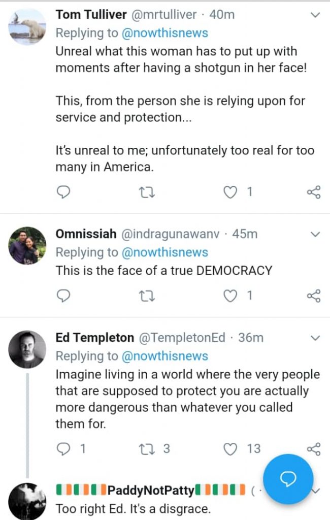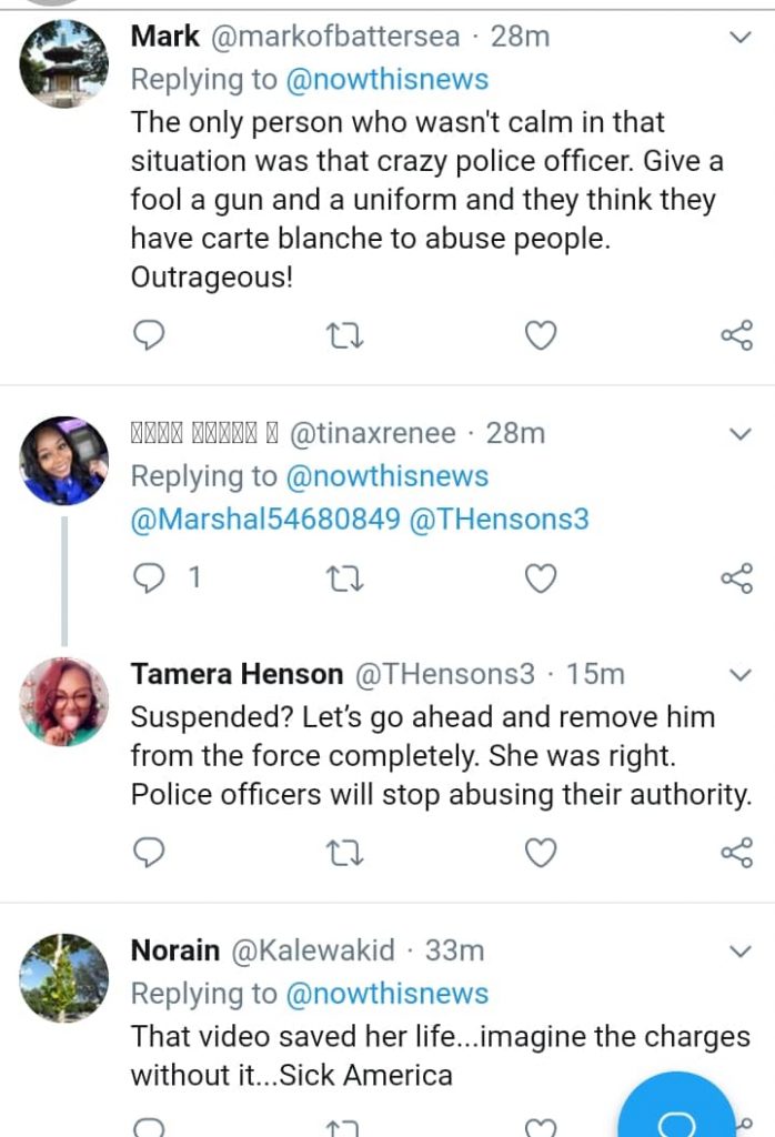 The footage shows police violently arresting a black lady after she reported a man for threatening to shoot her.