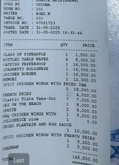 “They ordered like they were at a bridal shower or date with a sugar daddy! When I saw the bill, I froze for 20 seconds. ₦146,000. Let me write it again: One hundred and forty-six thousand naira. For breakfast. For THREE people. I checked the receipt and nearly screamed.