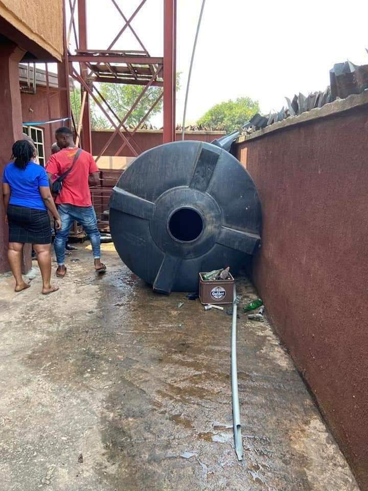 “Police patrol team led by DPO Ogidi Division CSP Mark Ijarafu rushed to the scene. On arrival, it was discovered that the overhead tank of about 800 gallons capacity filled with water fell from its high stand from a neighbouring house adjacent to the school on the roof of the pre-nursery class and directly into the classroom.