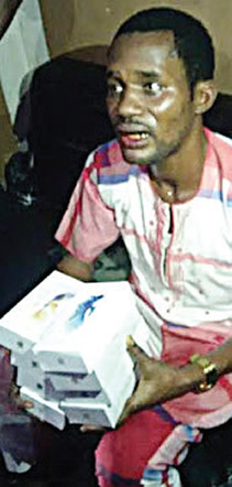 “The sales rep had to raise the alarm that the man was leaving with the goods. An SUV that was in front of his car had to stop to ensure that he did not run away with the phones and that was how they caught up with him and those with him in the vehicle. If the SUV was not there, they would have absconded with the phones because the road was very free. He was already inside the car and the car was in motion. I think there were about two other people in the car with him. The vehicle was in motion and ready to zoom off, yet he claimed that he wanted to give someone money. The police came around and he was handed over to them,” Onyeka said.Another shop owner who didn’t want his name in print, insisted he saw how Egbegbe rushed to his car with the phones and would have zoomed off.