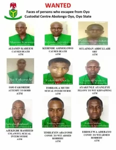 The Nigerian Correctional Service has, on Wednesday, released the names and images of 122 inmates who escaped from the Abolongo Custodial Centre in Oyo State.