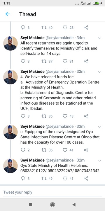 This was disclosed by the Executive Governor of the state, Seyi Makinde in tweets via his profile as attached.