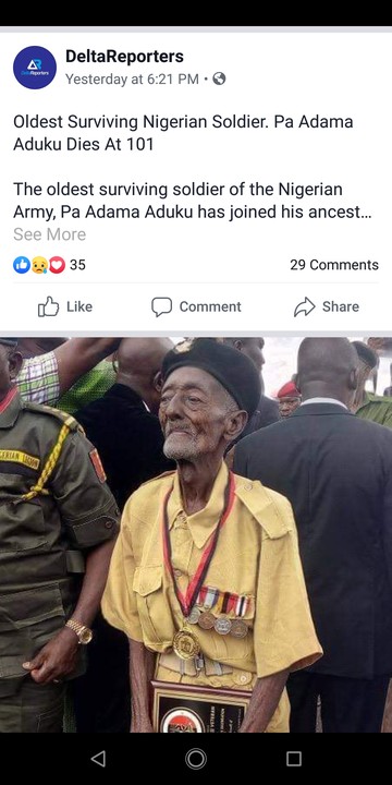 The oldest surviving soldier of the Nigerian Army, Pa Adama Aduku has joined his ancestors at the age of 101.