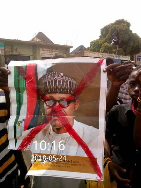 A heavy Protest against President Muhammadu Buhari took place in Kano on Thursday. Hundreds of youths carrying Placards were seen chanting anti-Buhari songs.