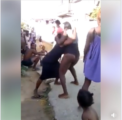 This is really shameful! Two ladies decided to slug it out in public after a heated argument. According to information gathered online, the two ladies after a disagreement – took their fight to the streets as neighbours and passersby looked on.