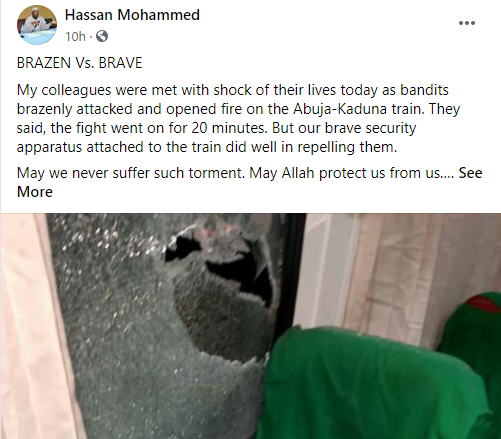 My colleagues were met with shock of their lives today as bandits brazenly attacked and opened fire on the Abuja-Kaduna train. They said, the fight went on for 20 minutes. But our brave security apparatus attached to the train did well in repelling them.