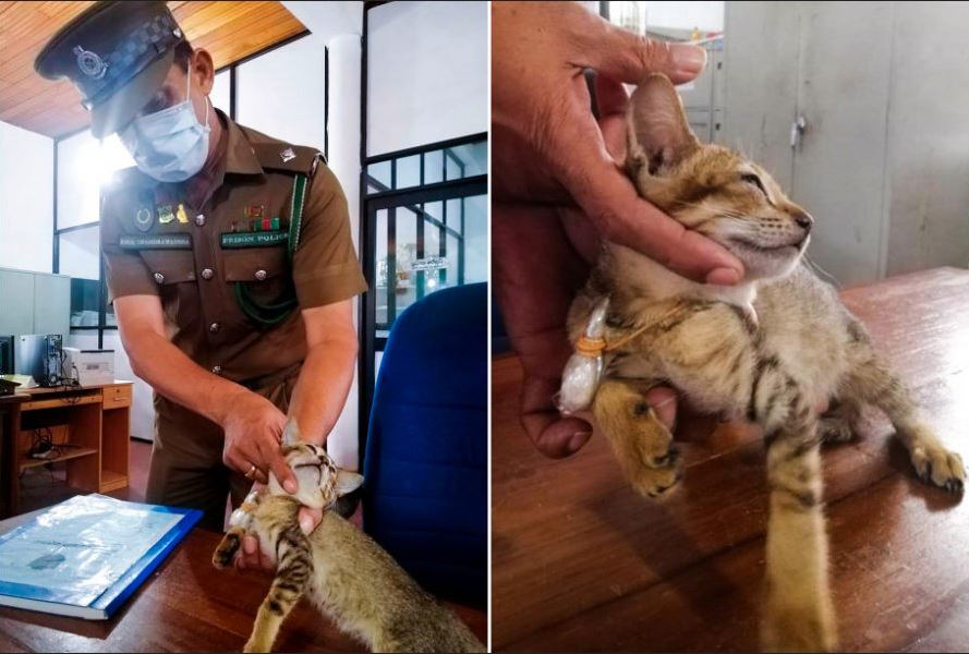The smuggling attempt was busted by the jail intelligence officials on Saturday August 1, at the high-security Welikada Prison. A police official said nearly two grams of heroin, two SIM cards and a memory chip were found in a small plastic bag tied around the cat’s neck.