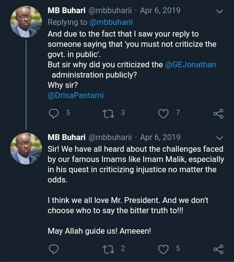 @mbbhuarii said, “Exactly one year since Sheikh Dr. Isa Ali Pantami blocked me. I didn’t abuse or disrespect him. I only amplified the voices of those who felt that he cannot speak truth to power anymore.”