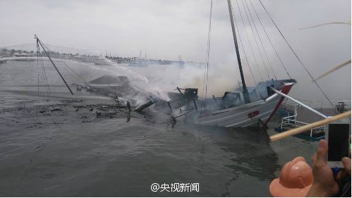 Witnesses said the fire first broke out on the deck and swept quickly across the whole boat. Dozens of passengers made their escape by jumping into the sea as the boat started to capsize. no casualties reported.