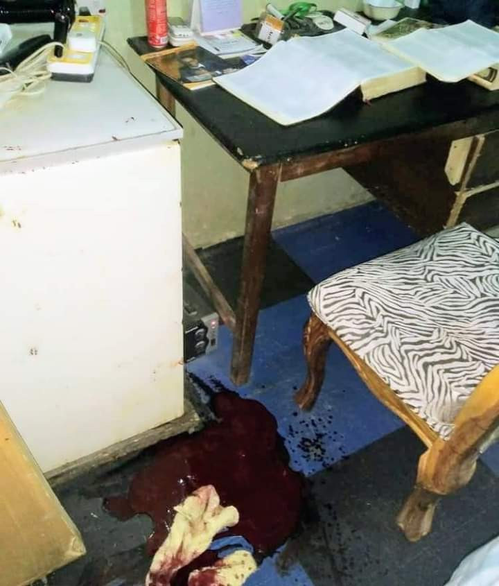 “The attackers forced their way into the room where the reverend and his family were having devotion and demanded that the reverend should give them money. When he replied that there was no money in the house, one of the attackers holding a gun immediately shot the reverend on the head and also on the leg and left him in the pool of his blood.”