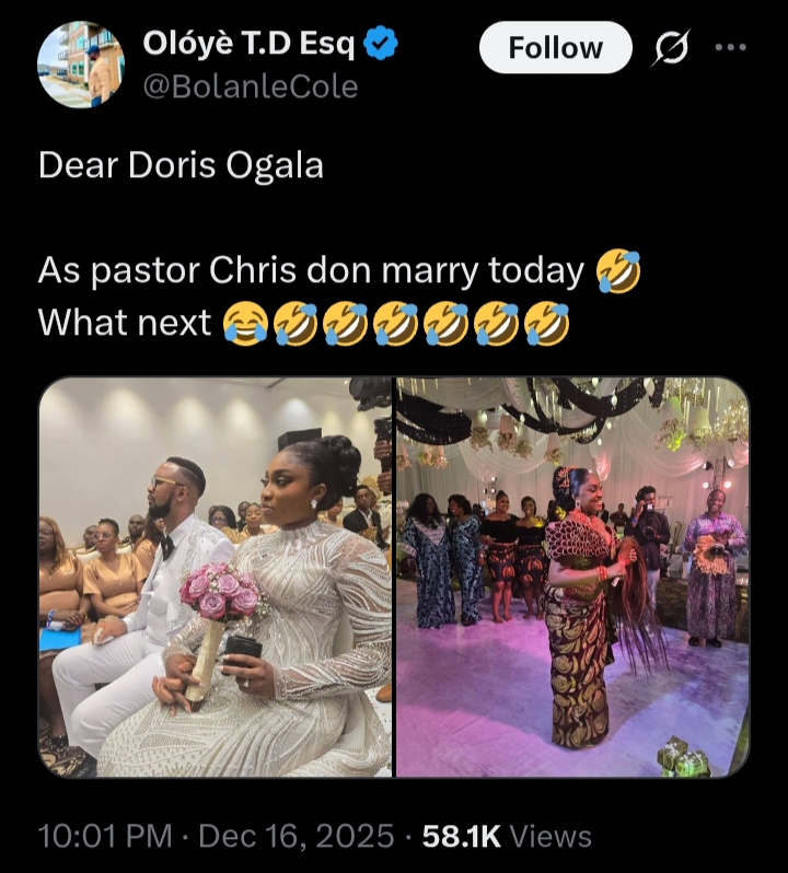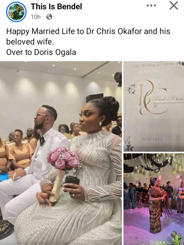 Popular clergyman, Pastor Chris Okafor gets married to his partner, after being called out by actress Doris Ogala for promising her marriage.