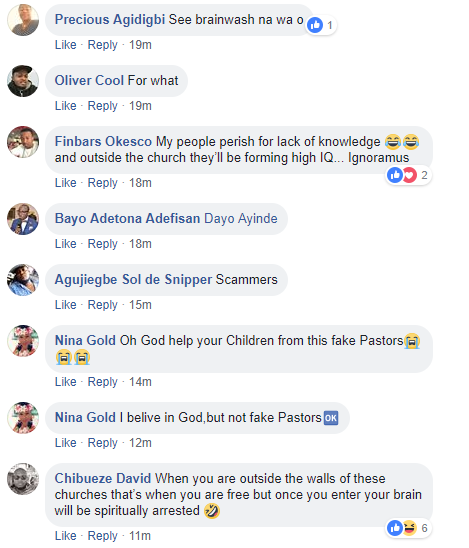 Nigerian Facebook users have heavily criticised the pastor over his mode of offering as they say that one’s blessings doesn’t depend on how much he or she gives.