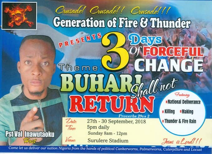 Pastor Holds ‘Buhari Shall Not Return Crusade’ In Lagos (Photo)