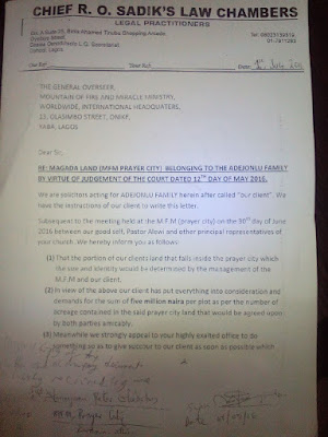 Following the ruling handing ownership and right of occupancy to the Adejonlu family, their lawyer, Mr. R. O. Sadik, told SaharaReporters that he wrote many letters to Mr. Olukoya for negotiation and settlement. Mr. Sadik said he took the steps because of the profile of the pastor and his church.