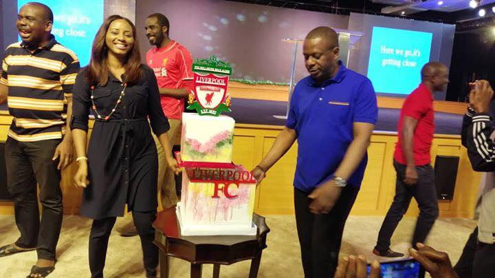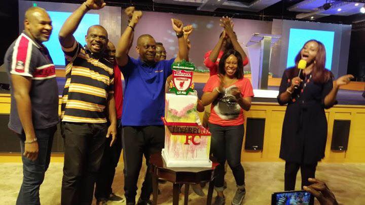The Senior Pastor of the Covenant Christian Church has celebrated the victory of the Football club, Liverpool at the Champions League game in Church. He wrote this “Today at our Mainland workers training I celebrated the Liverpool win with the cutting of a specially baked cake by @buttercupenterprises called up a few authentic @liverpoolfc supporters in Church.”