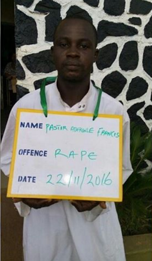 A pastor, Adekunle Francis, has been arrested by the Ogun State Police Command at Ipamesan, Sango Ota, for allegedly raping a 17-year-old girl, Dolapo.