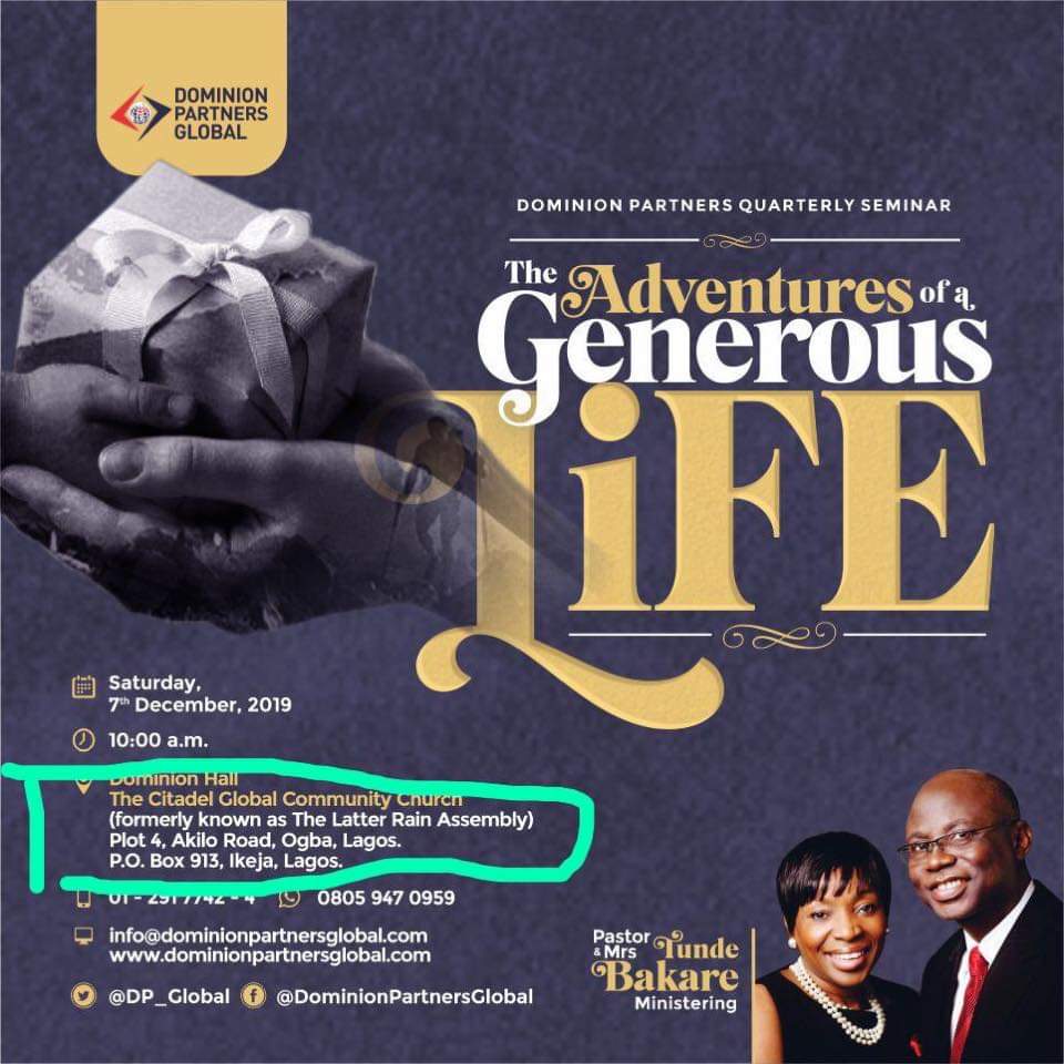 The Pastor Gbolahan Tunde Bakare led Latter Rain Assembly has changed name to Dominion Hall, Citadel Global Community Church. Church Gist gathered that the name was changed early this year, precisely in April 2019 in preparation for the multi billion naira new ultra modern structure-The Citadel. Some platforms on social media however still go by the name Latter Rain and an example is the Church website.