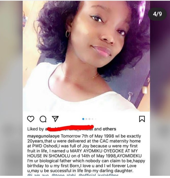 Ayomikun, however, emphasized that the only father that she has is Mr Soji Alabi, who has been married to her mother for over two decades and has been taking care of them.