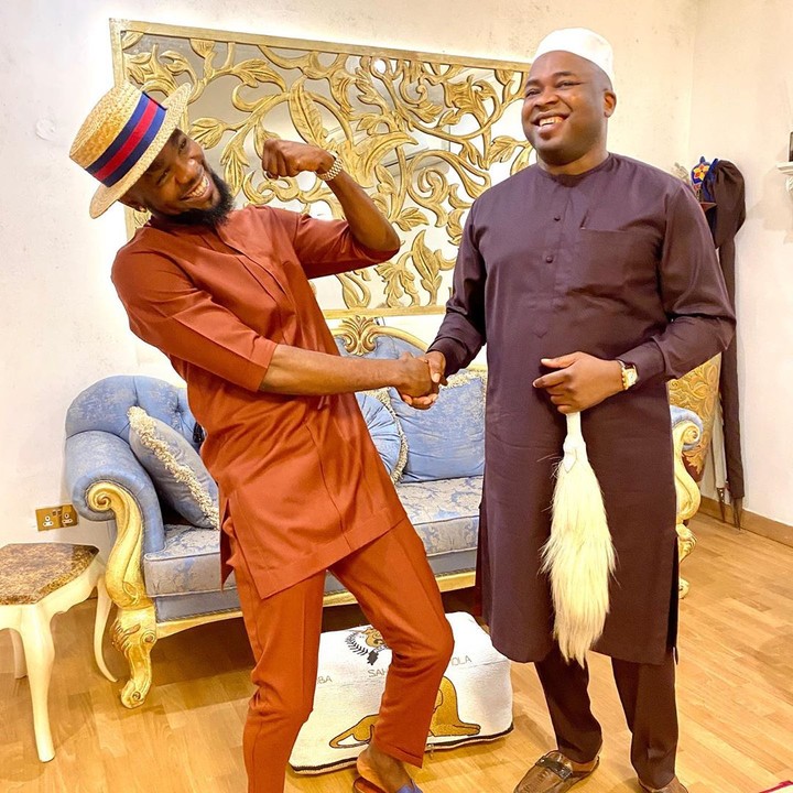 Nigerian musician, Patoranking has been spotted goofing around with Oba Elegushi of Ikate Kingdom. The pictures were taken during a courtesy visit by the musician. The monarch shared the photos on his page writing: “New year courtesy call by one of our best”