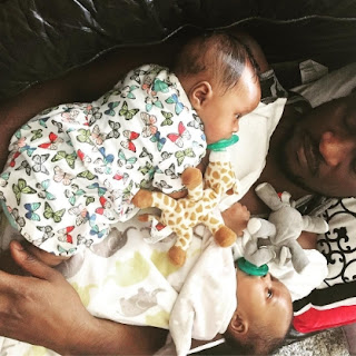 “Mehhnnn…..shoutout to my late Mumsy…is not easy. These 2 just gave me a new job called “sleeping”…#bodynobiwood #doubledouble #doubleblessing”