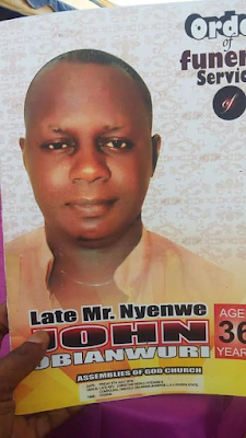A Peoples Democratic Party (PDP) agent who was killed during the rerun election in Rivers State held in March 19, was laid to rest Friday in his hometown. Mr Obianwuri Nyenwe left behind a wife and four children. May his soul rest in peace. Amen.