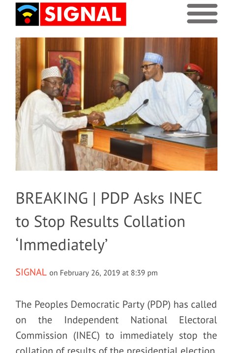The Peoples Democratic Party (PDP) has called on the Independent National Electoral Commission (INEC) to immediately stop the collation of results of the presidential election.
