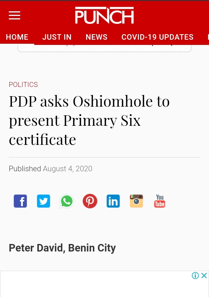 The Peoples Democratic Party, on Monday, asked a former National Chairman of the All Progressives Congress, Adams Oshiomhole, to present his Primary School Leaving Certificate if he actually went to school.