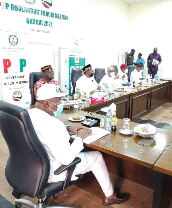 Governors elected on the platform of the PDP met in Bauchi, Bauchi State on 26th July 2021. The meeting deliberated once again on the state of the nation, reviewed the deteriorating state of our democracy, the economic and security situation in the country, the state of the PDP as the main opposition platform in Nigeria, and arrived at the following decisions.
