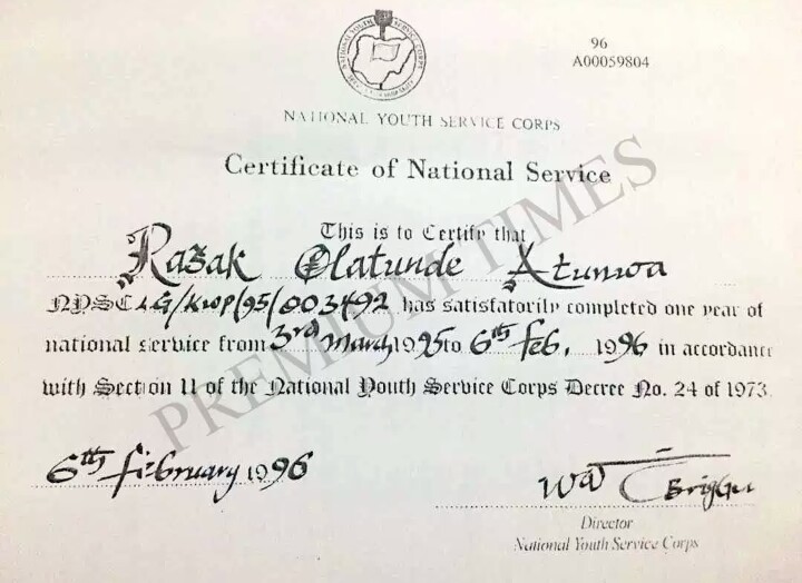 Mr Atunwa — who claimed he qualified for law practice in the United Kingdom after obtaining undergraduate and master’s degrees at separate universities in London — indicated in the nomination document he submitted at the PDP national secretariat in Abuja that he partook in the youth service scheme between 1995 and 1996.