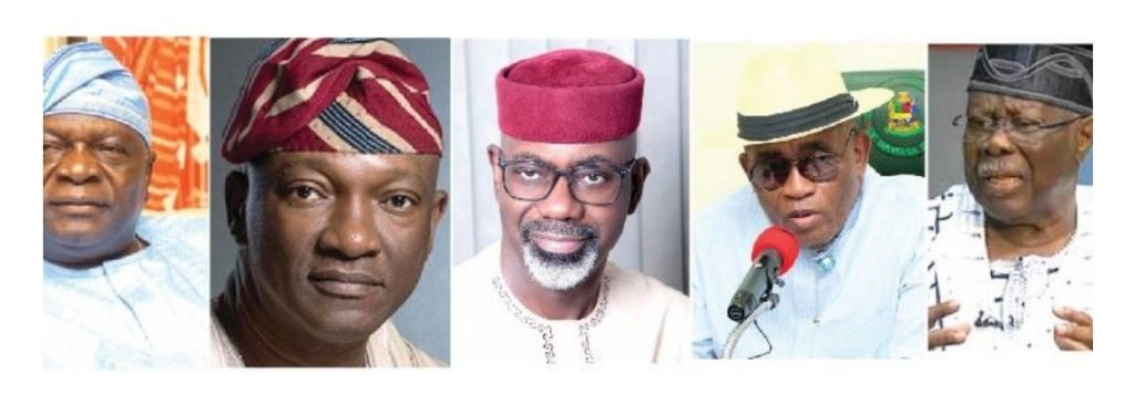 Party sources named the aspirants as former national secretary of the party and ex-governor of Osun State, Prince Olagunsoye Oyinlola; a former deputy national chairman of the PDP, Chief Olabode George; a former governor of Cross River State, Mr. Liyel Imoke; the immediate past deputy governor of Bayelsa State, Rear Admiral Gboribiogha John Jonah (rtd); and the party’s former governorship candidate in Lagos State, Mr. Jimi Agbaje.