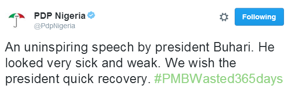 The opposition party thinks president Buhari’s anniversary speech this morning was un!nsp!r!ng.