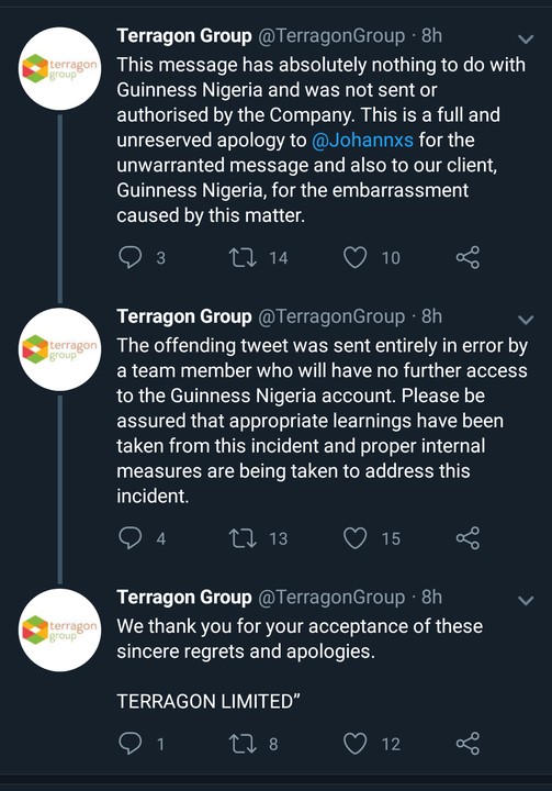 Terragon Group said on their Twitter page that the tweet was sent in error by a team member and they sincerely apologize to @johannxs.