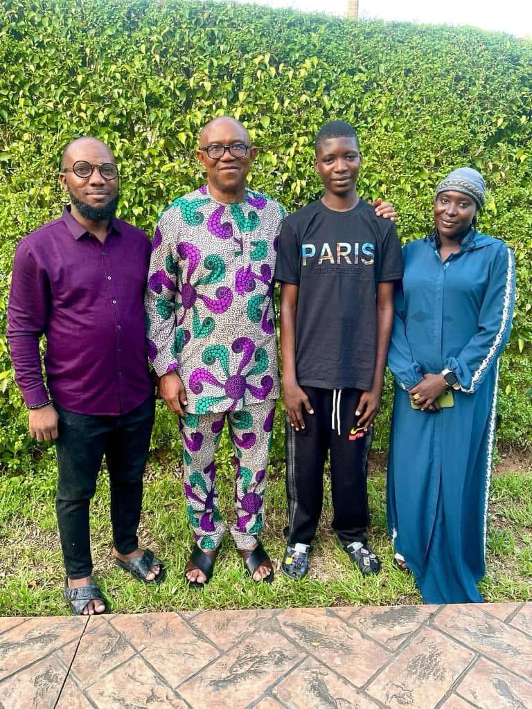 The Labour Party presidential candidate in the 2023 general election, Peter Obi, on Friday, April 18, visited Quadri Alabi, the young boy who went viral during the election after a photo of him standing in front of Obi’s convoy surfaced online.