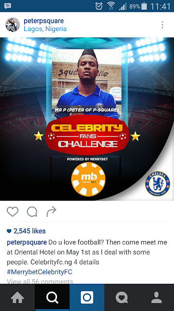 Last week, we told you about MI Abaga’s threat to deal with Oritsefemi and 9ice at the upcoming celebrity football fan party/showdown- Celebrity Fans Challenge on May 1st powered by Merrybet; well, Peter Okoye of P-Square is the latest celebrity to join the star-studded cast of this unique event at Oriental Hotel VI.
