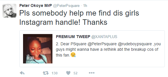 Peter Okoye wants to meet her after a fan tagged him with the young lady’s crying video.