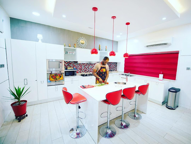 Singer Peter Okoye aka Mr. P took to his IG page to show off his beautiful kitchen. He captioned the photo;