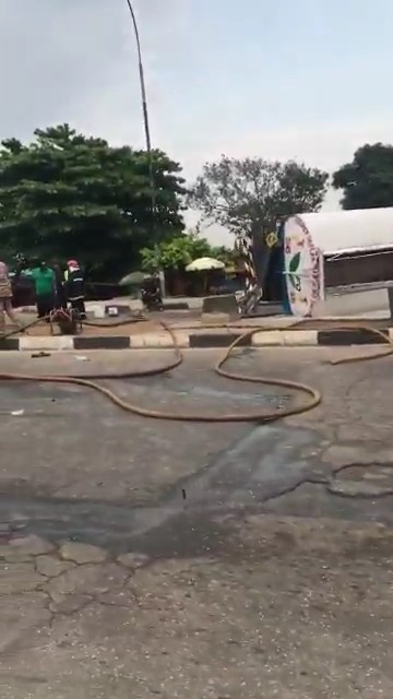 Ikeja Airport road blocked after a tanker load of fuel fell over…
