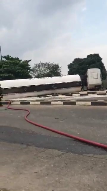Petrol Tanker Fell On Airport Road Ikeja, Lagos State